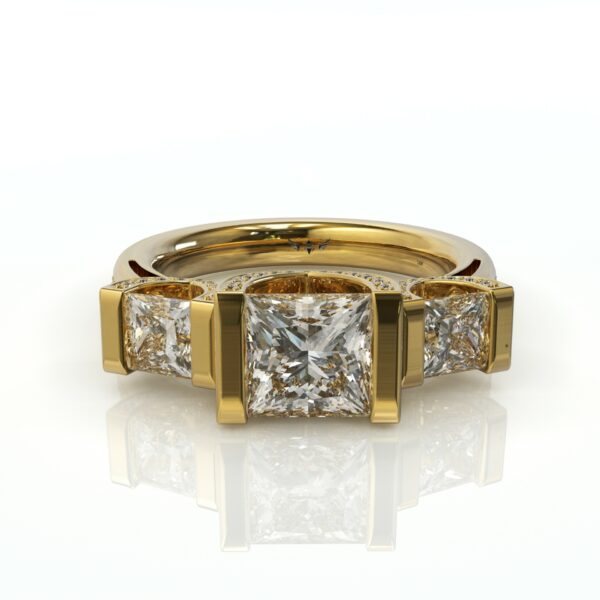💎סה"כ משקל יהלומים בצדדים עגולים ושני פרינססים – 0.65 – 0.50 קראט – צבע: F ניקיון: VS1 / VS2